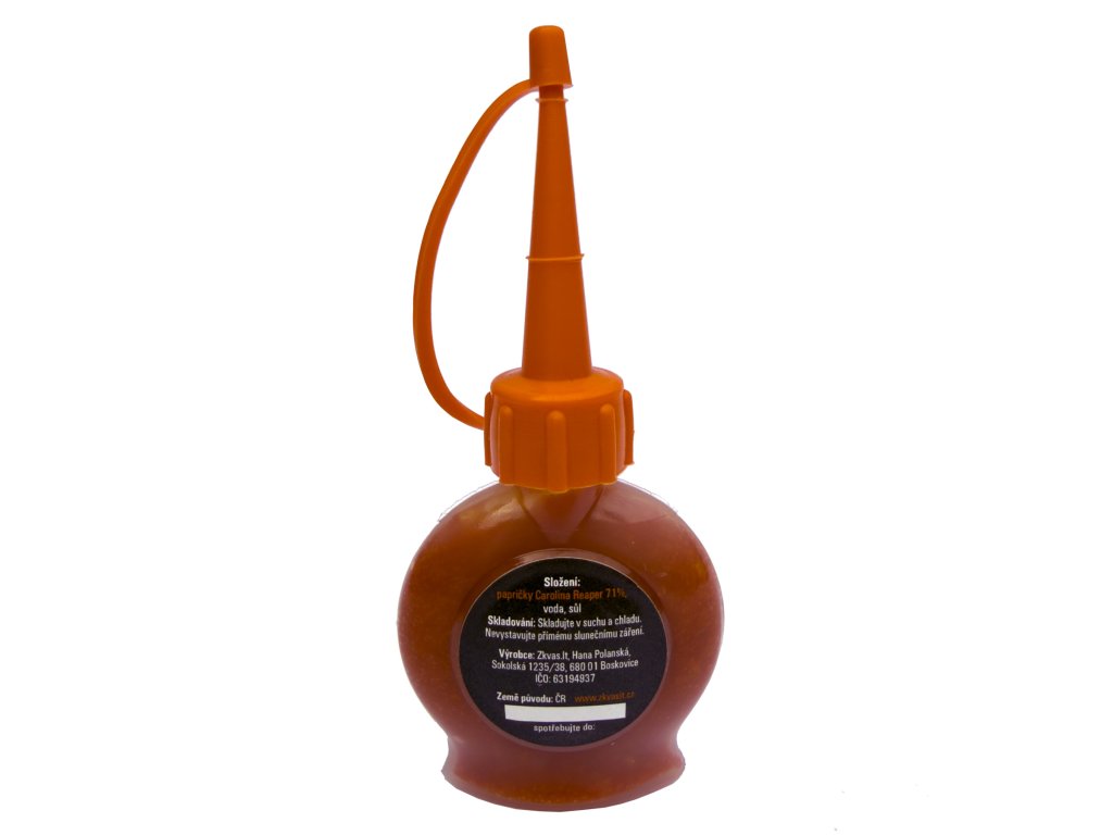 Složení: papričky Carolina Reaper 71%, voda, sůl