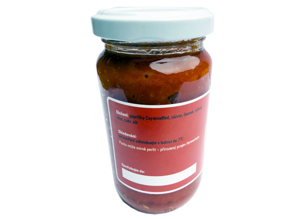 Složení: papričky Cayenne Red, zázvor, česnek, rýžové víno, cukr, sůl