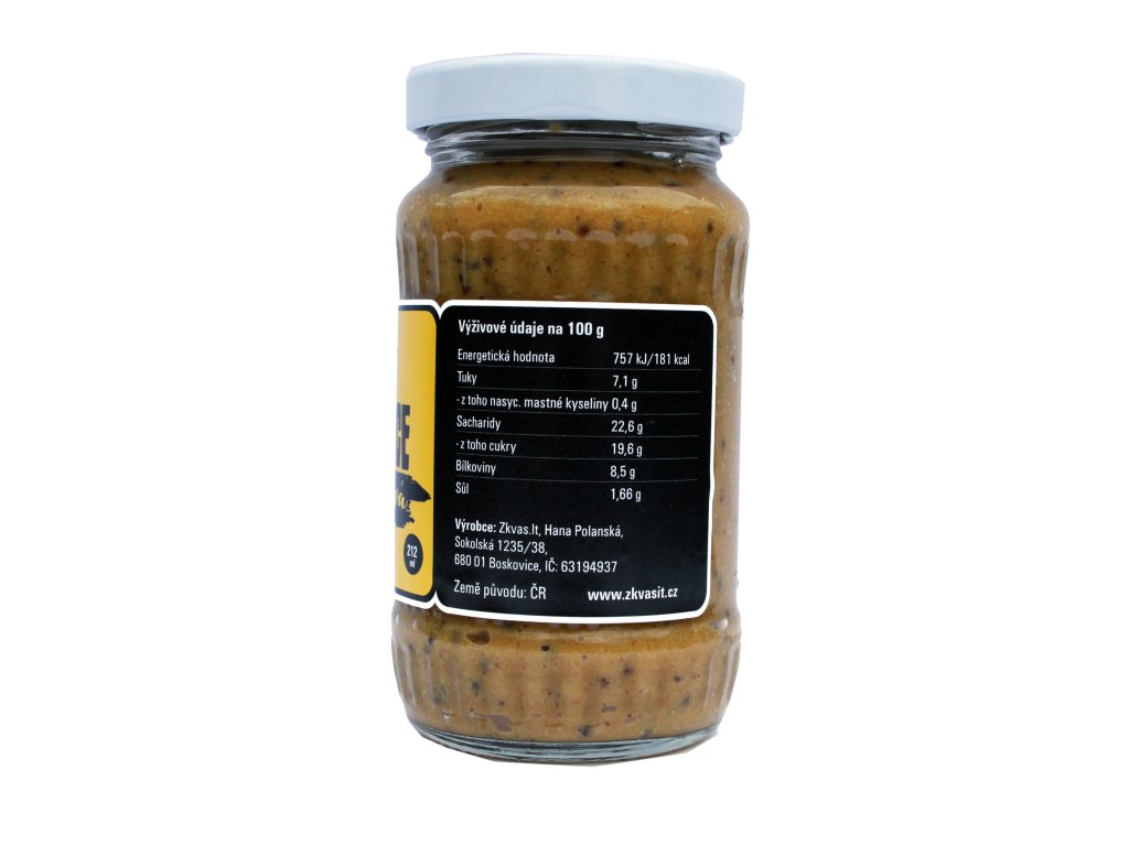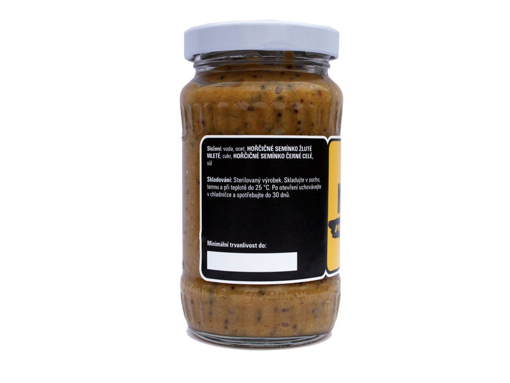 Složení: voda, ocet, HOŘČIČNÉ SEMÍNKO ŽLUTÉ MLETÉ, cukr, HOŘČIČNÉ SEMÍNKO ČERNÉ CELÉ, sůl