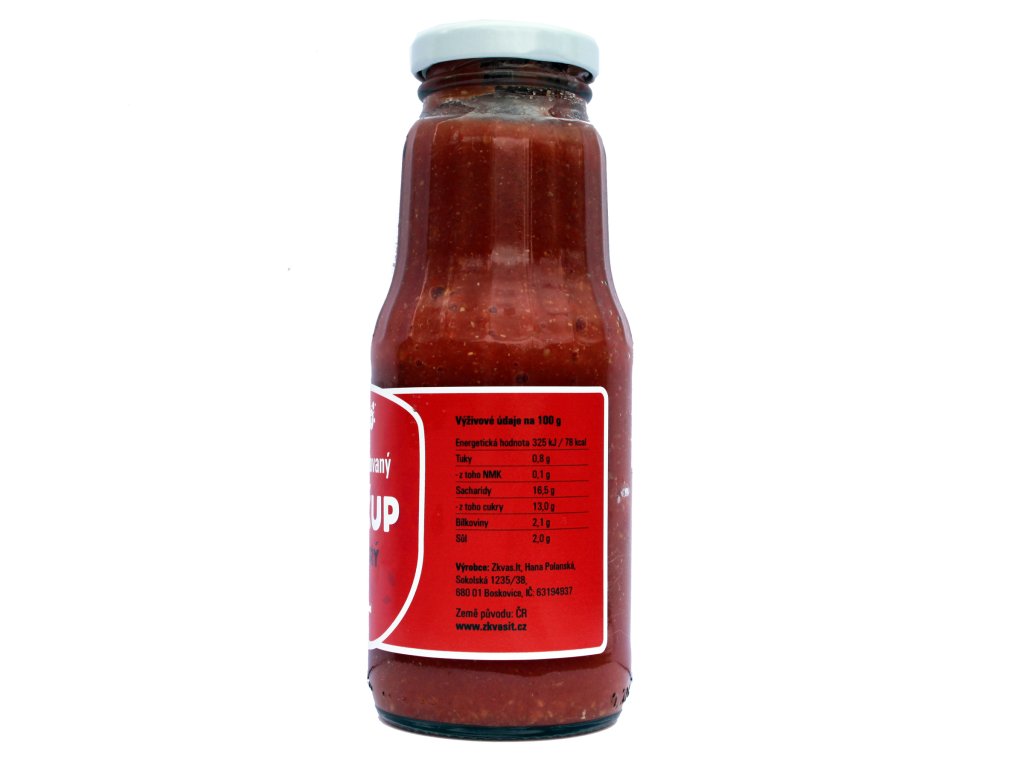 Složení: rajče, jablko, cibule, voda, česnek, CUKR, sladká paprika, HOŘČIČNÉ SEMÍNKO, chilli sušené Jolokia, sůl