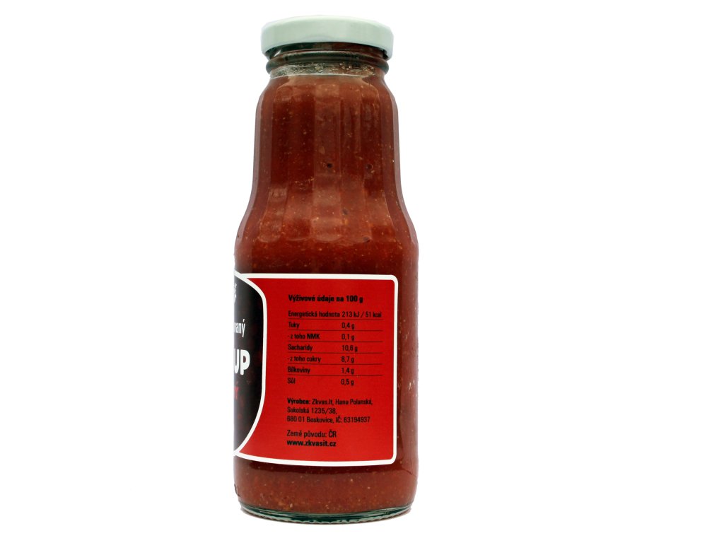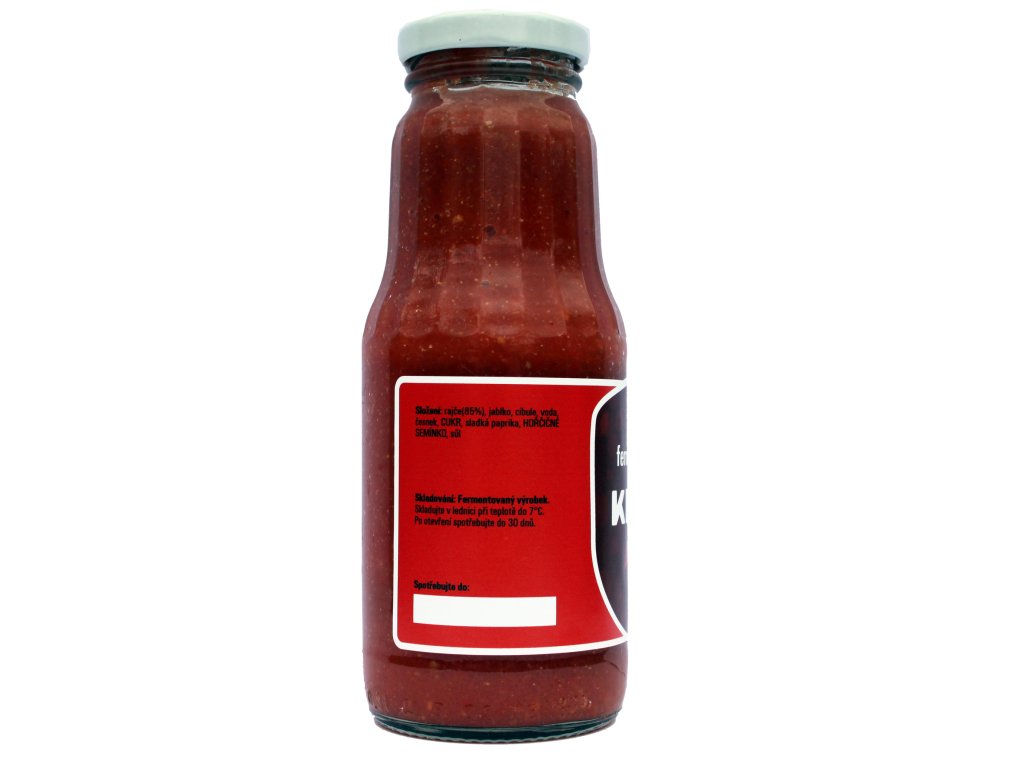 Složení: rajče, jablko, cibule, voda, česnek, CUKR, sladká paprika, HOŘČIČNÉ SEMÍNKO, sůl