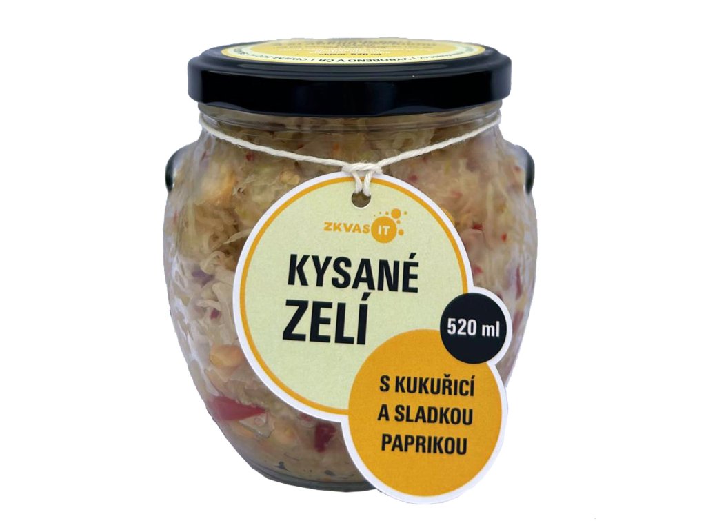 Složení: zelí bílé, kukuřice 12%, sladká paprika 12%, sůl, chilli vločky, šalvěj