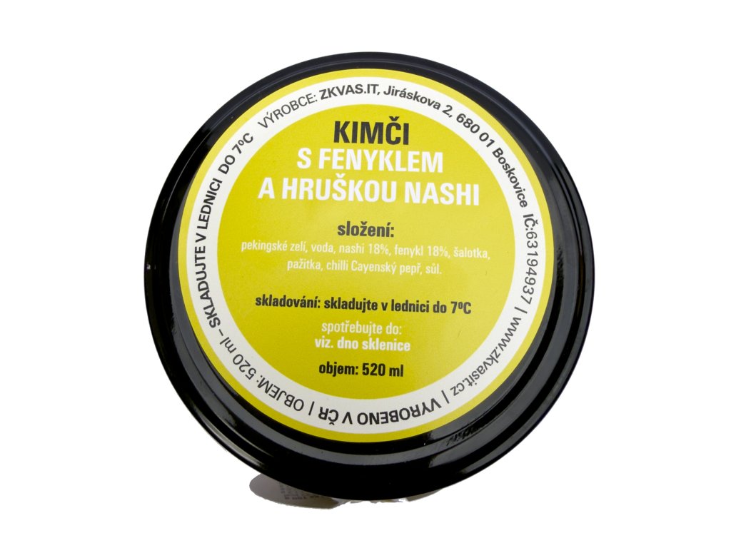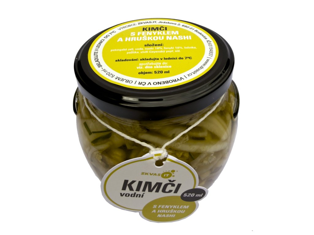pekingské zelí, voda, nashi 18%, fenykl 18%, šalotka, pažitka, chilli Cayenský pepř, sůl